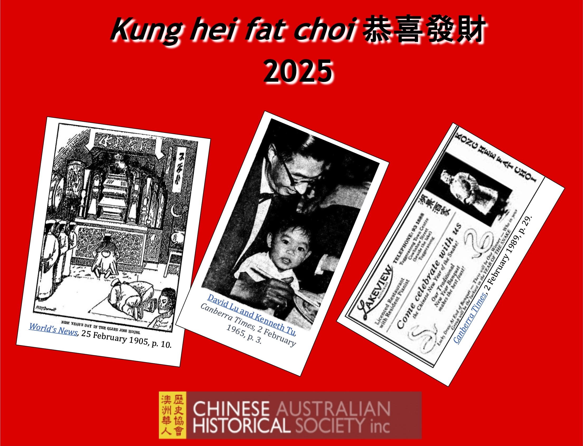 Or by cheque payable to the Chinese Australian Historical Society and posted to Treasurer, CAHS Inc, Eighth Floor, 180 Phillip Street, Sydney NSW 2000